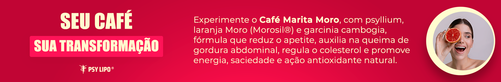 Café Gourmet solúvel, Laranja Moro, Pyssilium em pó e Garcinia cambogia.